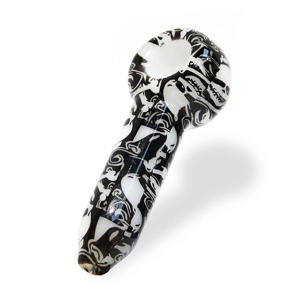 Diese Glaspfeife mit Totenköpfen im Großhandel ist wunderschön gestaltet, trägt einen charmanten Totenkopf-Aufdruck in Schwarz auf weißem Grund, bietet einen großzügigen Kopf, der selbst Ihre anspruchsvollsten Kunden zufriedenstellt, und ist ebenso funktional wie ausdrucksstark.