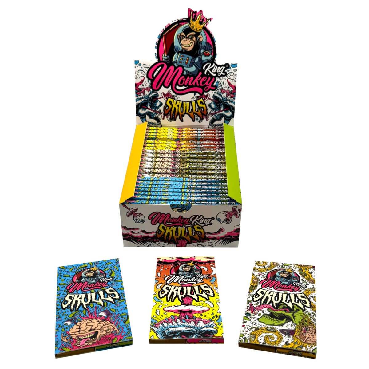 Monkey King Ungebleichte Rolling Papers Skulls King Size Slim mit Tips (24 Stück/Display)
