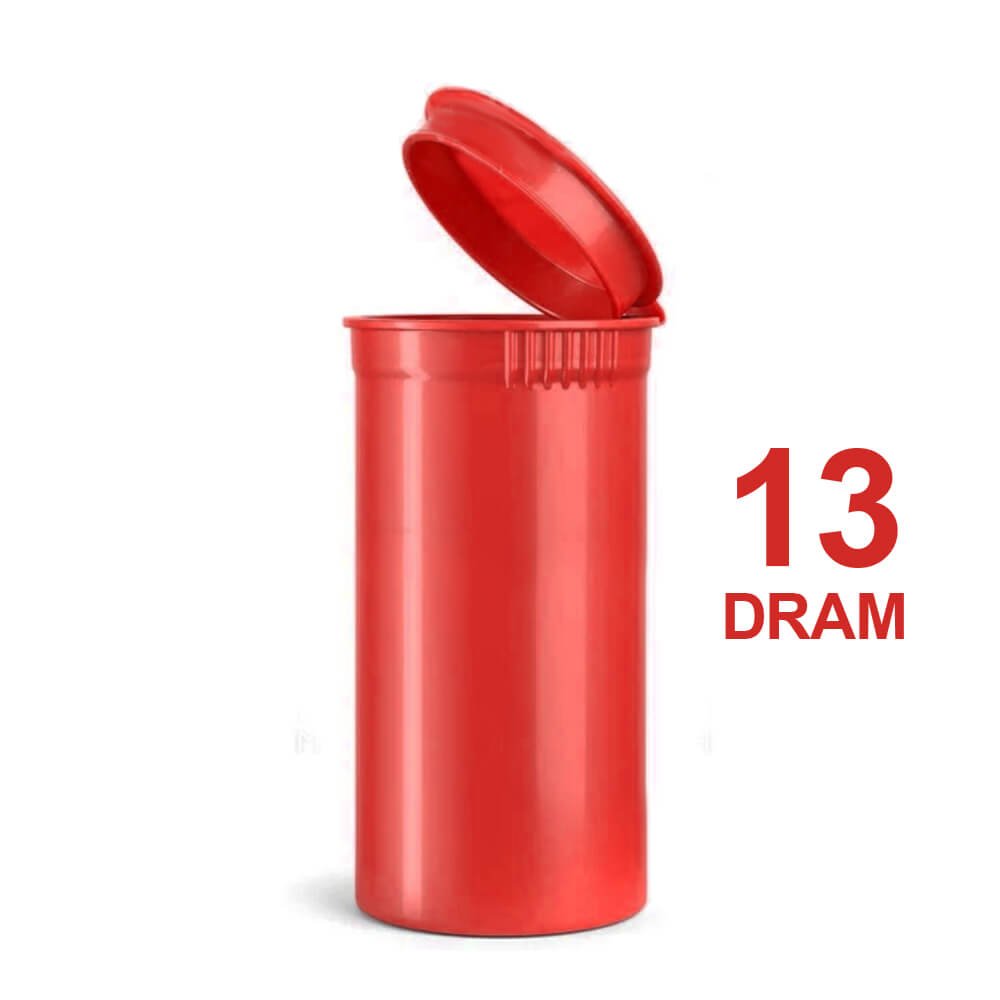 Bestellen Sie noch heute den kleinen, roten Poptop-Kunststoffbehälter (13 Dram, 35 mm) im Großhandel bei uns.
