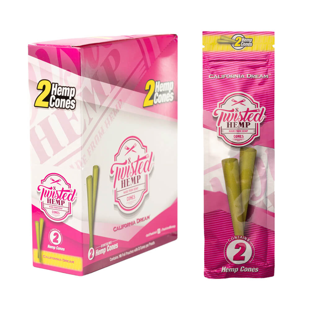 Diese Twisted Hemp Cones California Dream sind ideal für Ladenbesitzer und Einzelhändler, die Kunden mit einem duftenden, sanften und langsam abbrennenden Raucherlebnis locken möchten. Jede Packung enthält 10 Stück, jeweils gefüllt mit 2 Cones im verlockenden Geschmack „California Dream“, der die Essenz der Golden States einfängt.